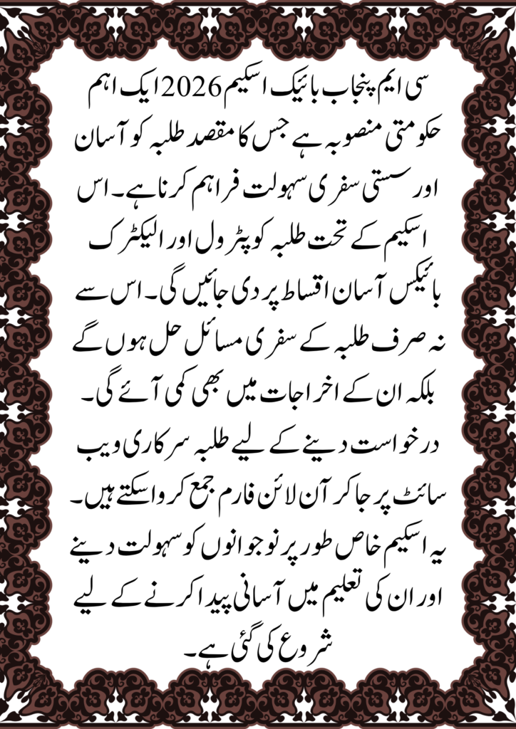 | Program Name | CM Punjab Bike Scheme 2026 | Youth support initiative |