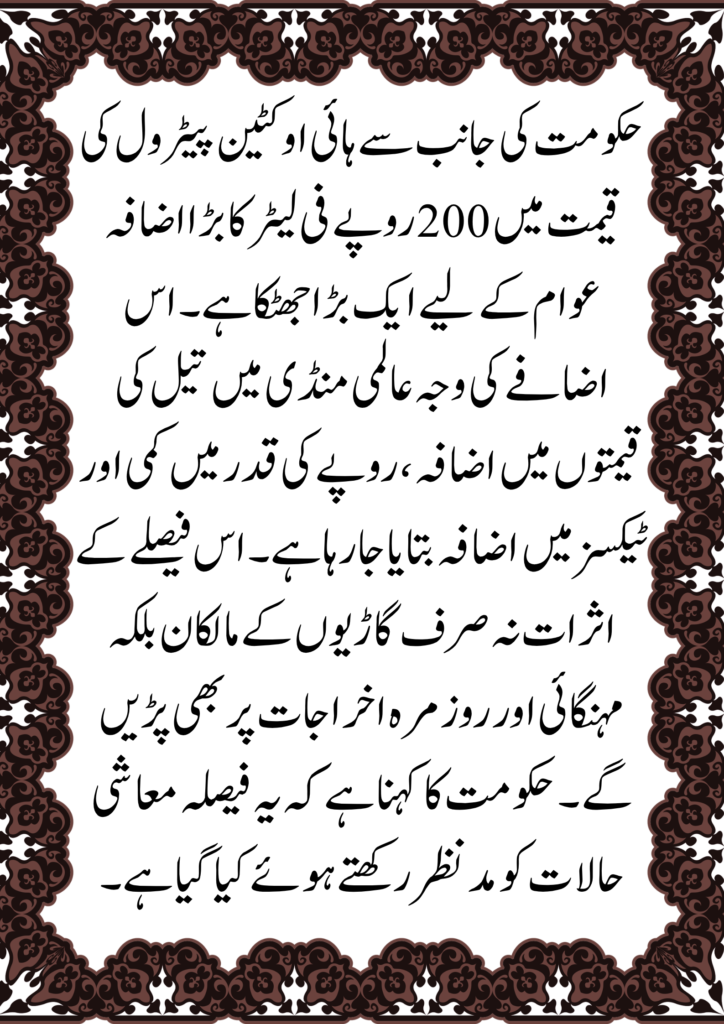 The shocking Rs. 200 per litre increase in High Octane fuel underscores the ongoing economic challenges confronting Pakistan. While the government points to global market dynamics and fiscal pressures as the reasons behind the hike, the direct impact on citizens is clear and significant. To cope with rising fuel costs, staying informed about price changes and adjusting spending habits accordingly can help individuals better manage their budgets during this period of economic strain.